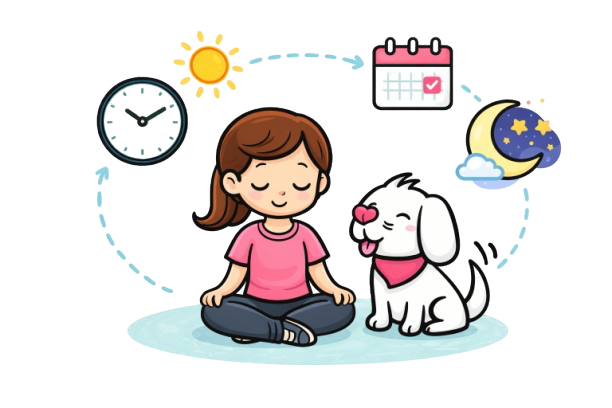 | Routine | Clock-based | Inconsistent | Dog-led, sun-based rhythm |